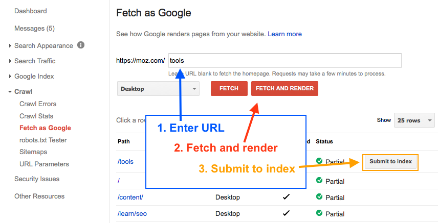 5. Submit for reindexing