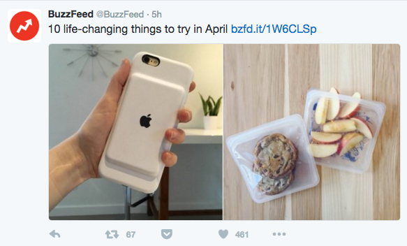 This doesn’t mean BuzzFeed has stopped using social to send traffic back to their site. In fact, almost all of their Twitter posts are click-baity listicles: