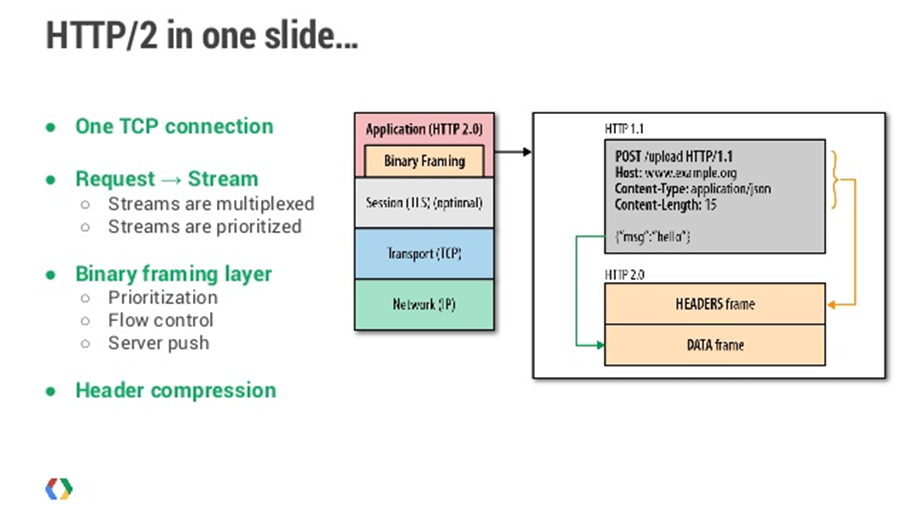 Quickly though, one of the biggest differences is that HTTP/2 will make use of one TCP (Transmission Control Protocol) connection per origin and “multiplex” the stream. If you’ve ever taken a look at the issues that Google PageSpeed Insights highlights, you’ll notice that one of the primary things that always comes up is limiting the number of HTTP requests/ This is what multiplexing helps eliminate; HTTP/2 opens up one connection to each server, pushing assets across it at the same time, often making determinations of required resources based on the initial resource. With browsers requiring Transport Layer Security (TLS) to leverage HTTP/2, it’s very likely that Google will make some sort of push in the near future to get websites to adopt it. After all, speed and security have been common threads throughout everything in the past five years.
