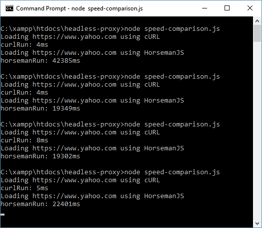 A ton more time, actually. I just wrote a simple script that just loads the HTML using both cURL and HorsemanJS. cURL took an average of 5.25 milliseconds to download the HTML of the Yahoo homepage. HorsemanJS, on the other hand, took an average of 25,839.25 milliseconds or roughly 26 seconds to render the page. It’s the difference between crawling 686,000 URLs an hour and 138.