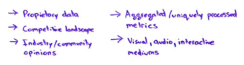 - Highly customized formats that have these interactive or visual components that other people are generally unwilling to invest the effort in to create.
