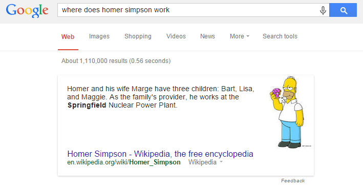 Google, and other engines, have become very adept at recognizing different entities and formulating answers to questions. And it’s through this connecting of data that search becomes stronger. Answers to questions are algorithmically understood and displayed when, for example, one searches “who is the dancer in the chandelier video?”. Google “knows” that it is Maddie Ziegler. The idea that a search engine can connect the keywords to an entity and reply with the accurate answer makes Google’s search much more constructive for its users.