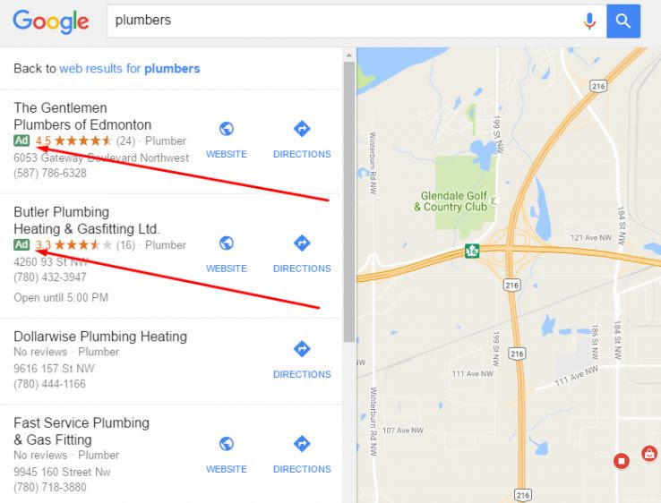 For example, take a look at the results I get for “plumbers”: