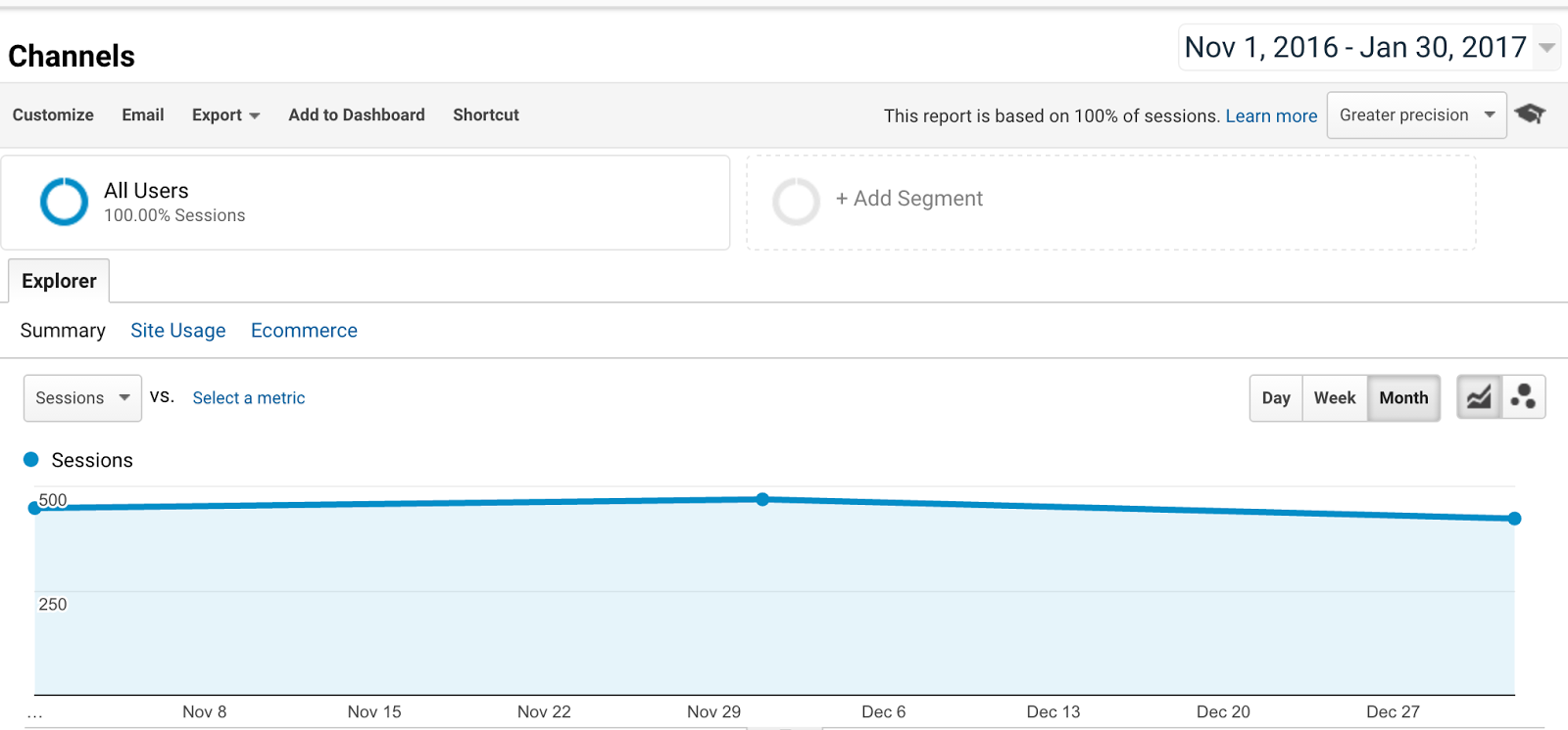 • Whether your business is affected by seasonality. For instance, the B2B SaaS industry normally experiences a recession close to the middle of July, and enters a ramp-up mode at the beginning of September. But without having YOY comparison at hand, you can't say whether it’s a trend or not. Besides that, seasonality should also be taken into serious consideration if you’re planning to grow your conversions.
