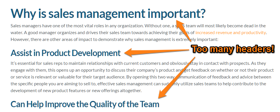 To get there, we started by reviewing every article ranking for “sales management,” noting what we liked and what we didn’t.