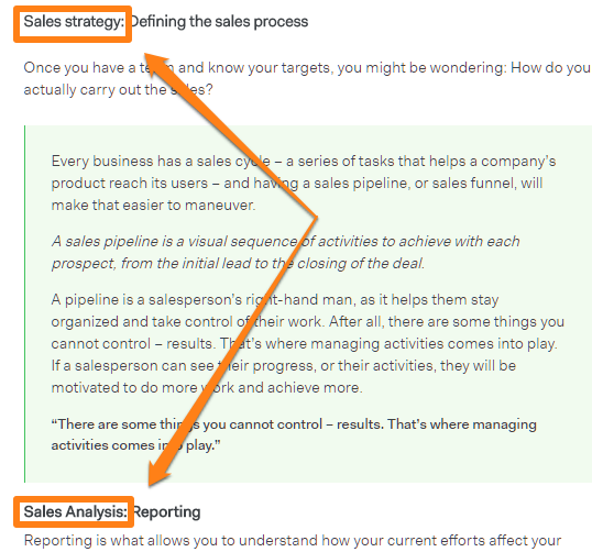 To get there, we started by reviewing every article ranking for “sales management,” noting what we liked and what we didn’t.