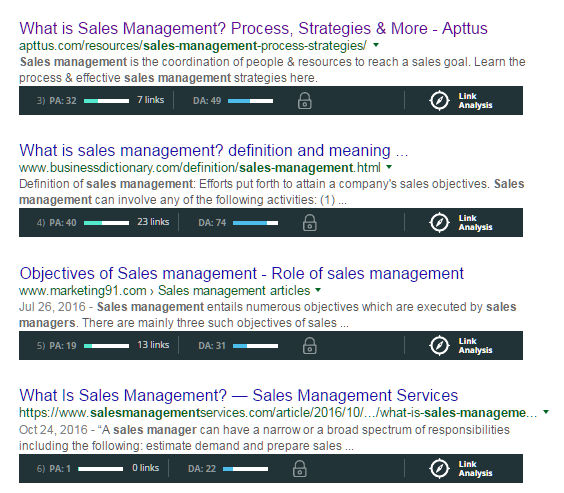 In our case, we chose “sales management” as the target keyword.