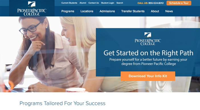 It wasn't a bad page to begin with, but we believed there was opportunity to test some stronger value propositions. "Get Started on the Right Path: Prepare yourself for a better future by earning your degree from Pioneer Pacific College" doesn't sound all that exciting, does it?